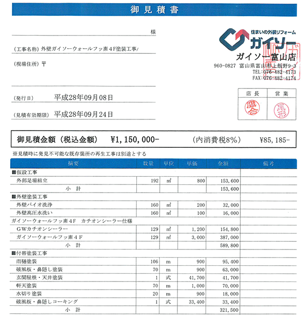 ※概算のお見積りでは、4方向からの写真があった場合に、精度85%以上のお見積りとなります。