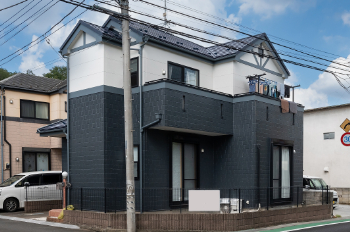 帯板を境目として、1階がブラック系、2階部分がホワイト系の色味となりました。
