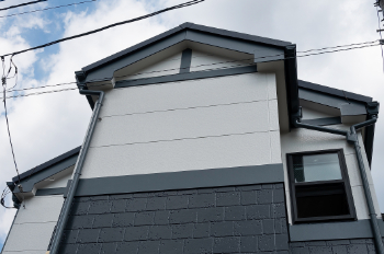 雨樋、破風、帯板はその中間色のような色で統一感があります。