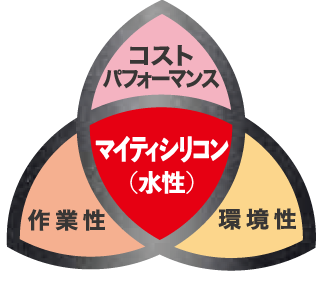 マイティシリコンは1液水性タイプなので、現場での作業性が良く、悪臭・引火性・毒性の危険もなく、総合的なコストパフォーマンスを含めてトータルバランスに優れたオールマイティーな塗料です。