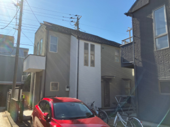 施工前の同じ画角の写真と比較すると、外壁の明るさと清潔感の違いがよく分かります。