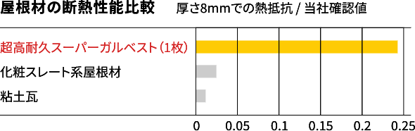 カバー工法に適したスーパーガルベストなどの屋根材は、断熱材をサンドした構造のものが多く、他の屋根材にはない抜群の断熱性能を発揮します。夏涼しく冬暖かい、一年を通じて快適な生活環境を実現します。